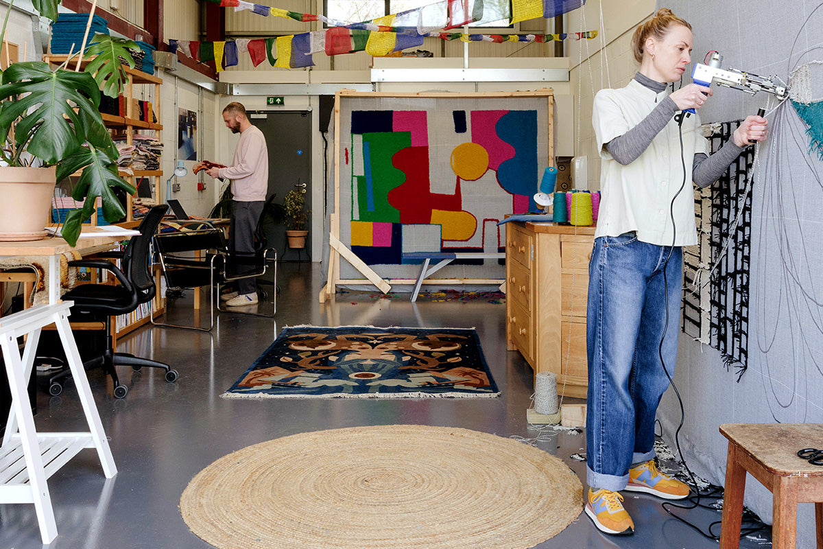 WARP comes to life through a deeply satisfying creative process in their Somerset studio. Using tufting looms, they craft small, individual artworks, while larger collections and bespoke commissions are brought to fruition in collaboration with their extended weaving family.